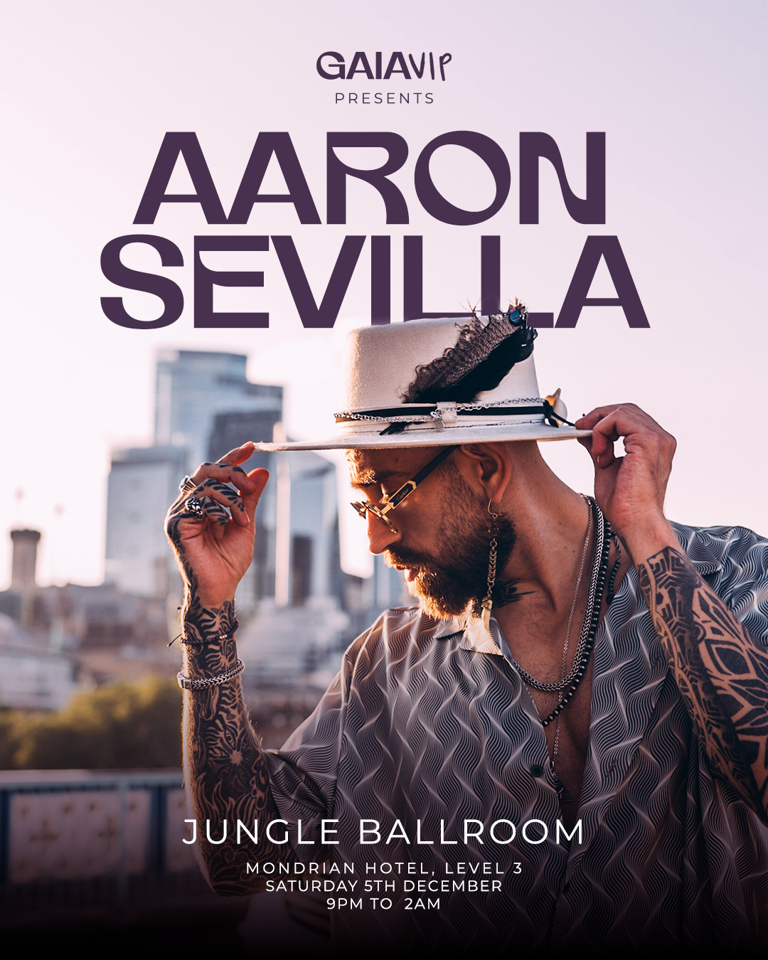 Friday, 5th December 2025 — We welcome Aaron Sevilla, the Mexican DJ and producer celebrated for his Afro-Latin-infused house sound and percussion-driven sets. With chart-topping releases and performances across the world’s leading stages, he brings his unmistakable rhythm and energy to Jungle Ballroom for a GAIAVIP night where culture, groove, and connection meet.